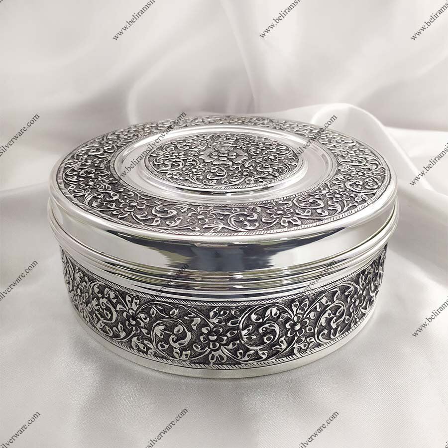 • Refine and benevolent, this round silver box will portray your luxurious and serene taste.
