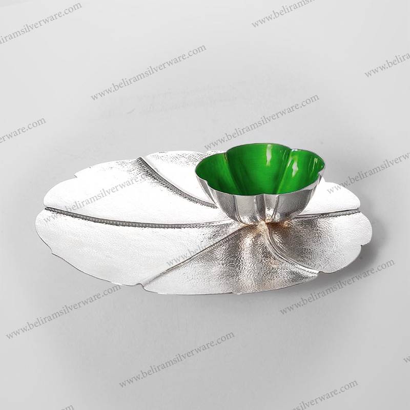This flawless Scalloped Border Leaf Silver Platter with Green Bowl (Size-Medium) is an ideal gift and looks beautiful when loaded with eatables or dry-organic products. It will look extraordinary on the table as a highlight or serve uncommon food on unique occasions.