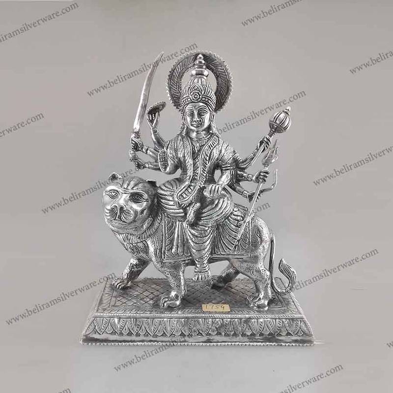 Looking for silver Durga murti price or Maa Durga silver murti price? This appalling silver engraved image of Durga Mata is capriciously arranged with a strong base and back. Brilliantly enriched with bloom adornments cut out of the metal with accuracy and balance, this symbol looks engaging and enrapturing. This brilliant symbol of Maa Durga’s Murti on Pedestal is engraved with astounding quality silver metal.