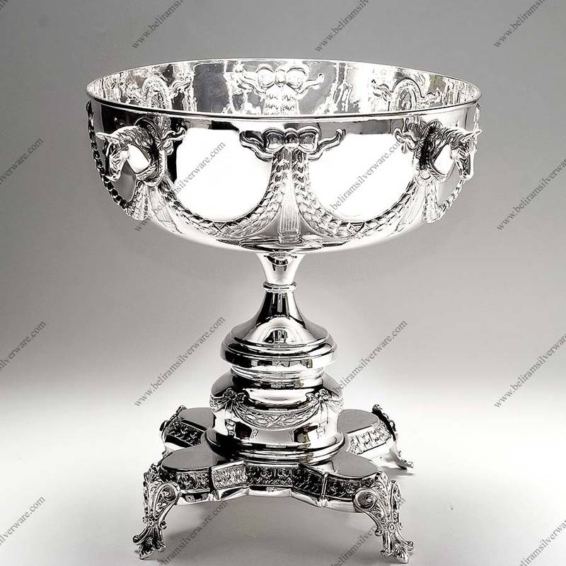 It is made from authentic silver which increases its worth even more. It is always a smart decision to invest in silver items and with our superior quality, it is an even wiser choice. With our customization services, you can also customize this bowl to add some personal meaning. Enquire about the silver bowl weight with price and get the best now. We aim to give you a wholesome shopping experience with us!Horse Motif Silver Bowl on Designer Pedestal