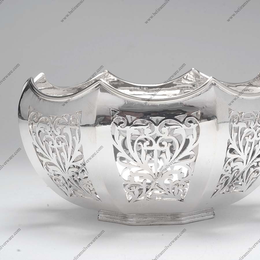 • This Large Silver Decortaive Bowl with some cutwork designs on the exterior is the perfect centerpiece for your table.