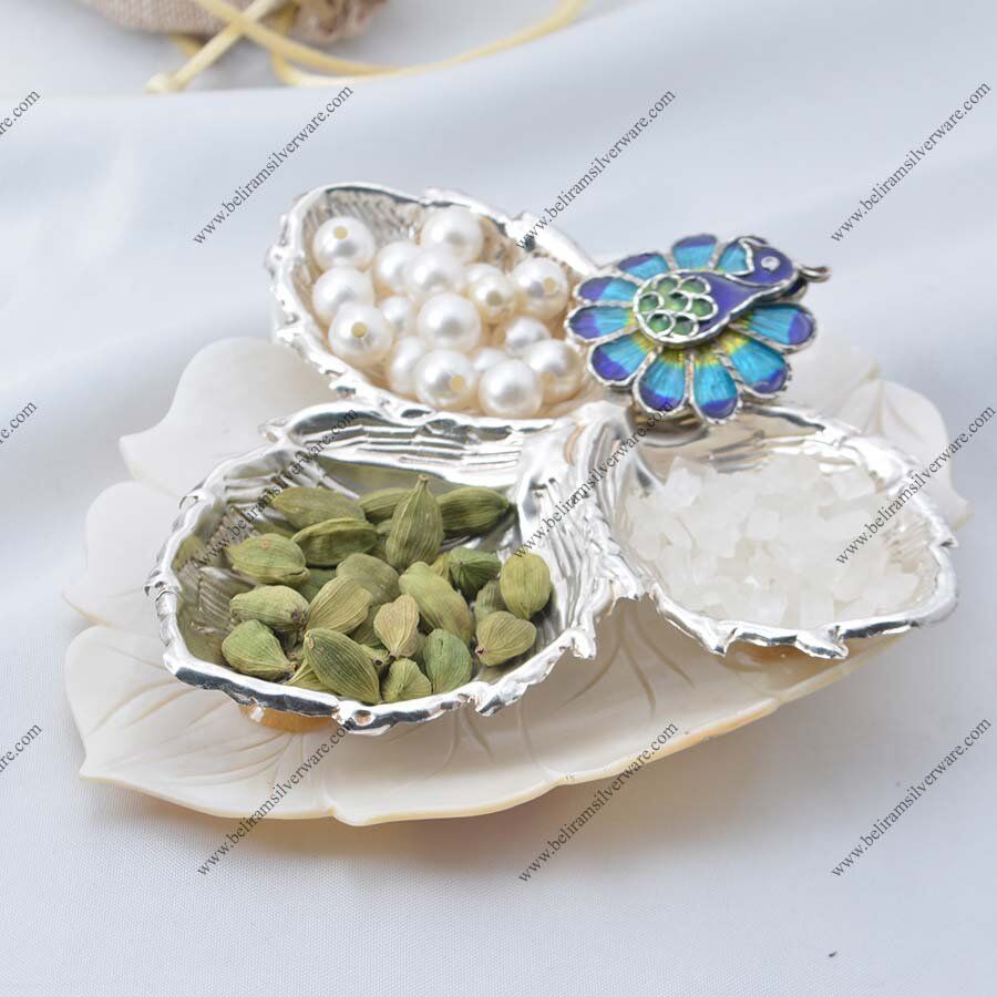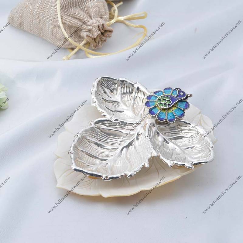 Leaf Design 3-in-1 Silver Bowl has a leafy design, with more detailing over the platter giving it a similar appearance. Everyone will compliment your taste. Along with the exterior, the silver bowl has many health benefits. Your immunity will become better with this fancy silver bowl.