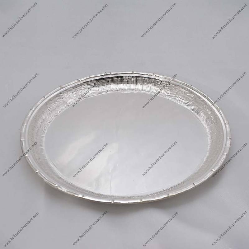 Proceeding towards the alluring demeanour of the dinner silver plate , the enticing piece of art has a round, circular core which displays a plain, smooth look. The core is surrounded by textured inner walls. Carved with delicate bamboo-shaped etchings, the rim of the plate encompasses the said inner walls.