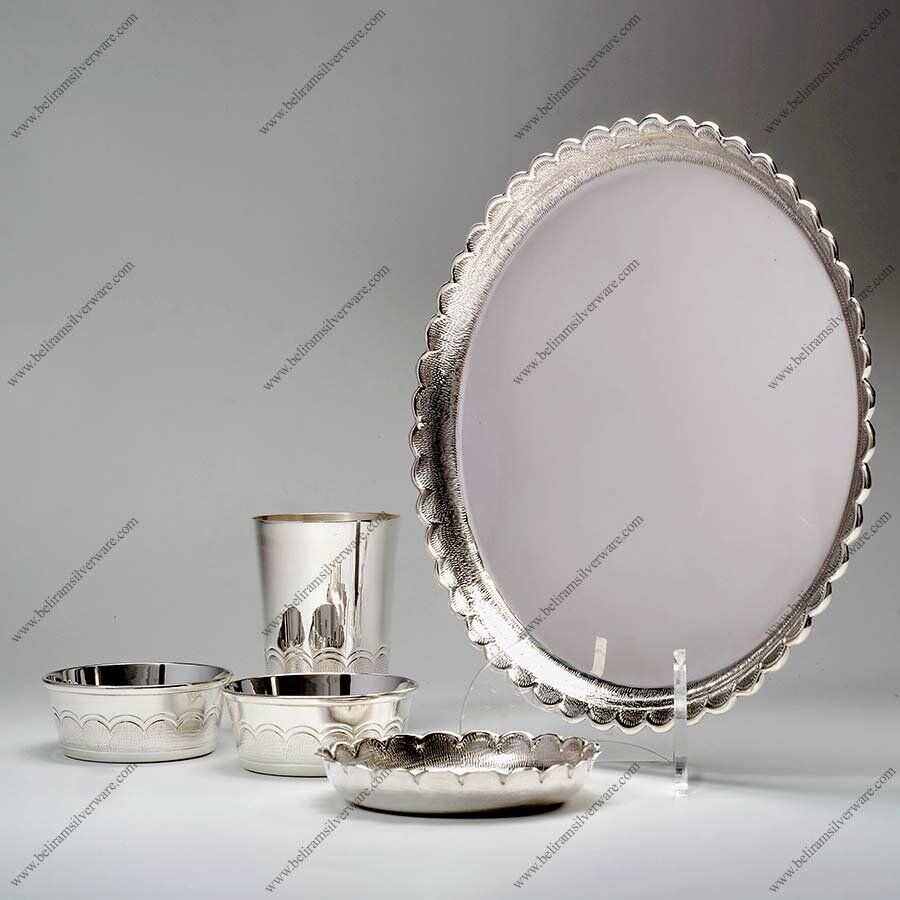 Silver is a part of our rich cultural heritage and evidently this dinner set will make your dining experience majestic in itself. Scalloped design silver dinner set comes with subtle scalloping carved by adept craftsmen that is unique in its own, and will certainly adorn every table and any occasion.