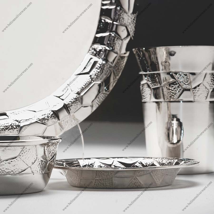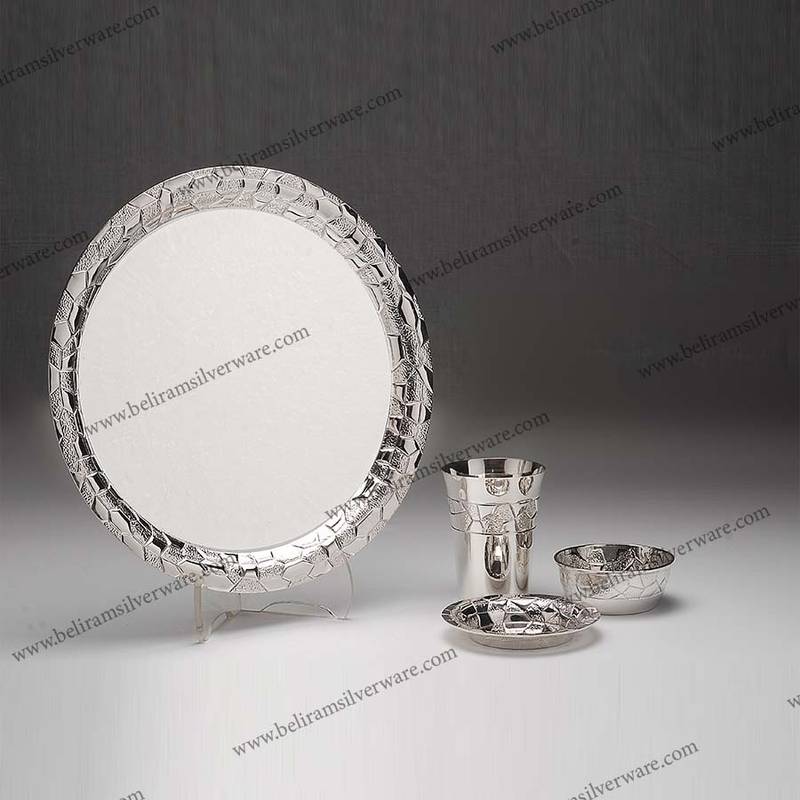 Who wouldn’t want to see something lovely? The magnificent Thali set from Beliram features border crystal structures. The silver Thali set has different parts in the form pattern that give it different meanings. The Thali set’s zigzag design was carefully crafted under supervision to give it an abstract effect. The ever silver dinner set’s stunning design will inspire viewers to appreciate this work of art.