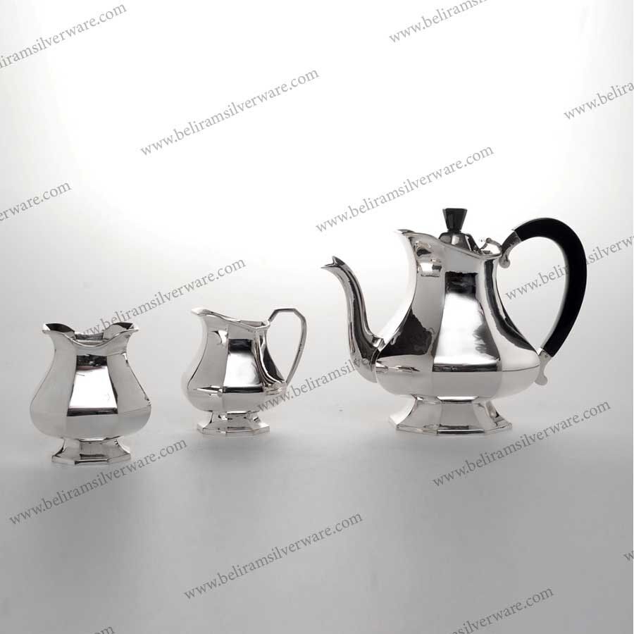 The jet-black handles, not just visually striking but also ergonomically designed. At its core, this silver tea set bears the fascinating hallmark of a chiliadal fineness. As a testimony to its exceptional craftsmanship and enduring beauty, this tea set is a compelling addition to any setting, promising an enticing and exhilarating experience with every use.