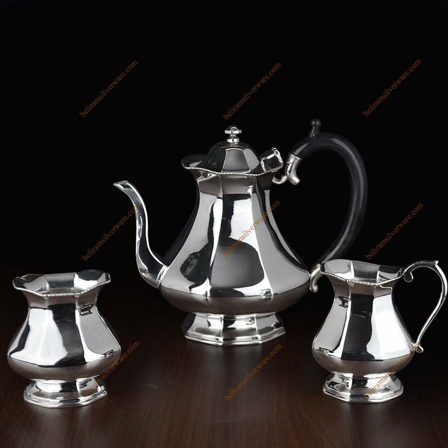 Elevate your mornings and evenings to a realm of elegance and indulgence with our latest addition—Wavy Rim Fluted Silver Tea Set. It effortlessly caters to your cravings for tea, coffee, and other beloved beverages. Immerse yourself in the soothing warmth of your favorite brew. Which is enveloped in the charm of antique design that evokes a sense of timeless sophistication. This tea set is more than just a serving tool. It’s an exquisite testament to classicism and opulence that catches the eye of every passerby.